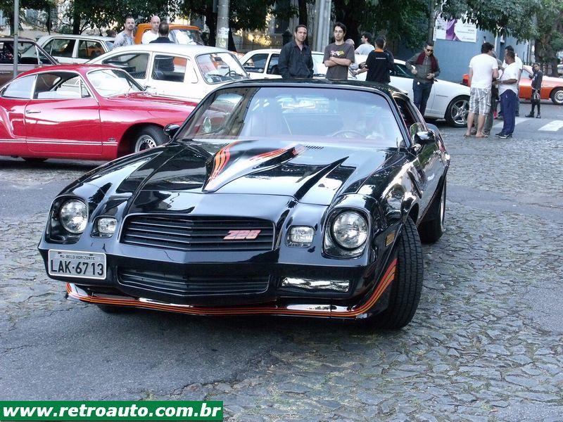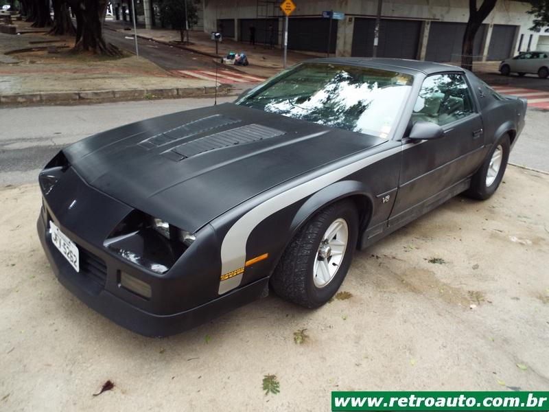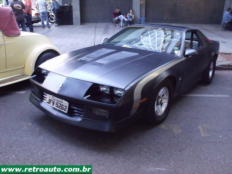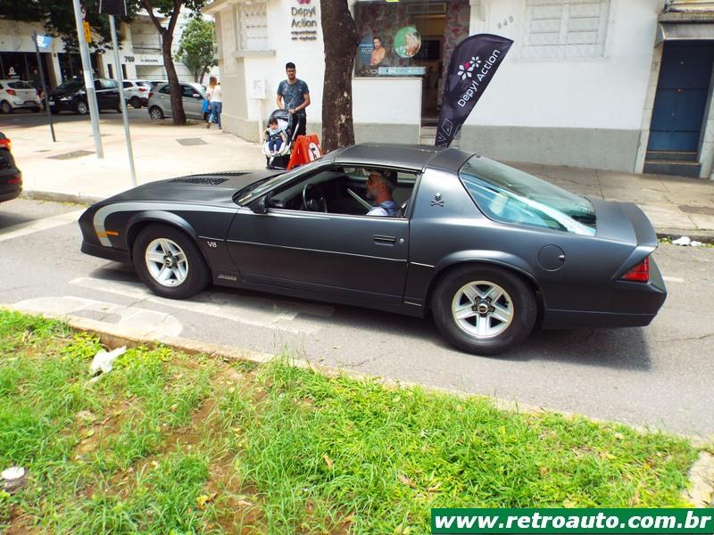 Um Chevrolet Camaro Z-28 motor V8 305 (4.998 cm³), terceira geração (1982–1992) saindo para o passeio