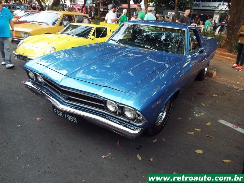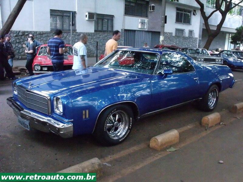 Belo Chevrolet El Camino 1973. O primeiro, lançado em 1959/1960, foi sobre a plataforma do Chevrolet Impala, passou pela do Chevelle e nesta terceira geração usou a do Chevelle Malibu Classic. Fazia concorrência ao Ford Ranchero