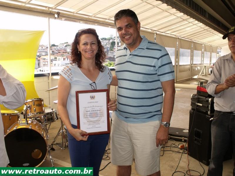 Alex Godoy, presidente do Clube Opala Planalto recebe um certificado AMA de Milton Sálvio