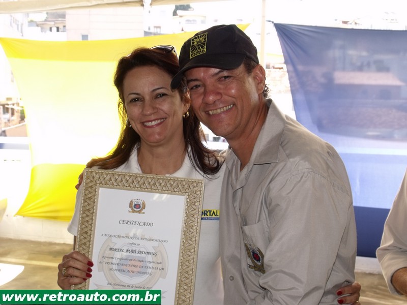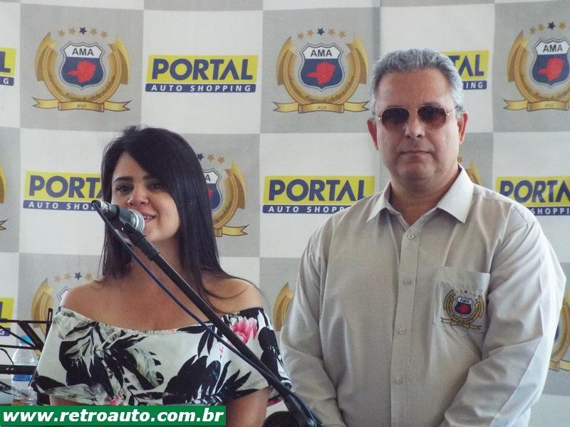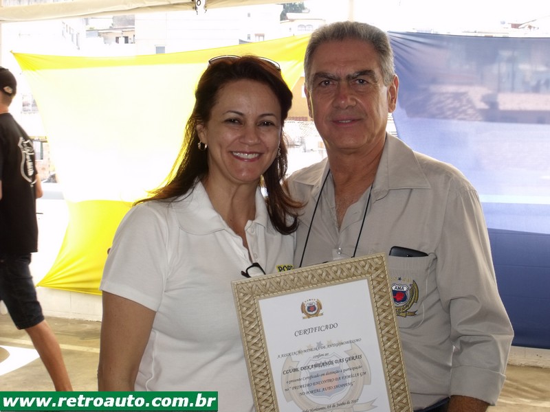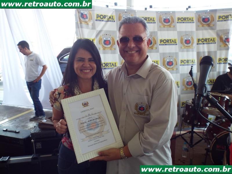 Antônio do Monte Furtado Filho, presidente da Associação Mineira de Antigomobilismo comandou a entrega de certificados à novos clubes filiados à AMA. Abaixo com Viviane Valadares gerente do Portal Autoshopping que acompanhou na entrega de certificados e brindes.