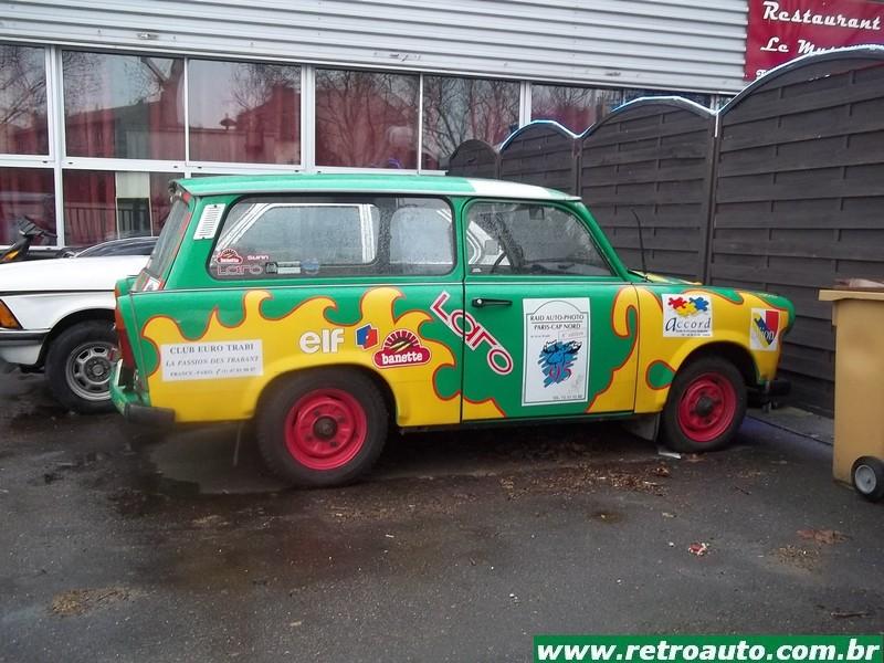 Um Trabant . Foi produzido pela VEB Sachsenring Automobilwerke, em Zwickau, na antiga Alemanha Oriental, por 34 anos, entre 1957 e 1991.