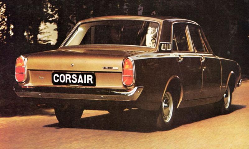 Foi assim que, em 1963, foi lançado o Ford Cônsul Corsair, sendo que pouco tempo depois era denominado apenas por Corsair. O sedã de três volumes tinha versão com duas ou quatro portas, linhas modernas, retas em quase toda a carroceria, mas com a frente inclinada para baixo, em cunha, dando um aspecto mais agressivo. A inspiração no Thunderbird de 1962 era evidente. E ficava mais ainda se visto de lado, principalmente pelo perfil dianteiro como uma seta. Nesta época, a Chevrolet inspirava os modelos da Opel, que era uma concorrente da Ford inglesa. E esta também recebia tendências da matriz americana.