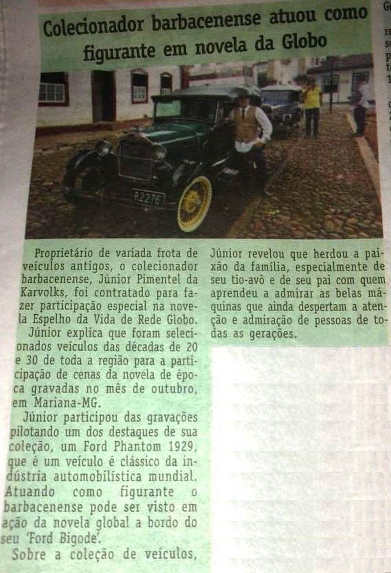 Fotos cedidas gentilmente por Júnior Pimentel de Barbacena, Minas Gerais, colecionador e proprietário do Ford Phaeton 1929 verde. Abaixo Júnior que atuou como figurante na novela.
