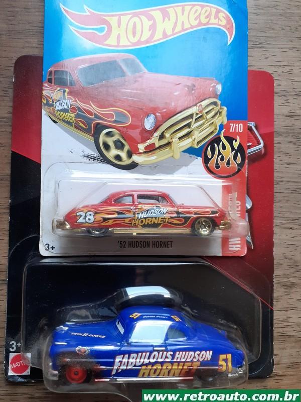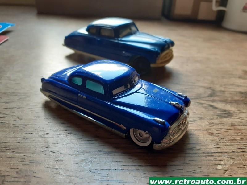 Dois modelos do filme Cars que foi uma série de filmes de animação e franquia de mídia da Disney ambientada em um mundo povoado por veículos criados por John Lasseter. A franquia começou com o filme de 2006 de mesmo nome, produzido pela Pixar e lançado pela Walt Disney Pictures. Doc Hudson (acima) era o juiz e mecânico da cidade de Radiator Springs. Sua voz era do ator e piloto Paul Newman. Abaixo dois modelos da Hotwheels