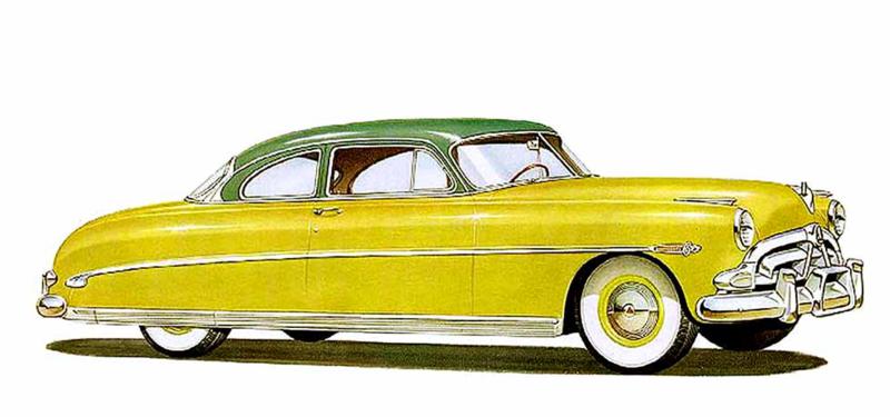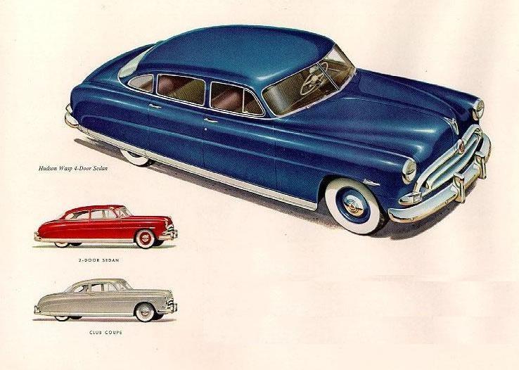 Abaixo o Hudson Hornet. Tinha um motor com seis cilindros em linha muito afinado e potente. Era chamado "The Fabulous Hudson Hornet" e foi tricampeão na NASCAR em 1951, 1952 e 1953. Tinha duplo escapamento, 210 cavalos de potência, válvulas maiores, taxa de compressão maior , comando mais afinado e cabeçote rebaixado. E também graças a boa aerodinâmica do carro. O lema era: Ganhar no domingo e vender na segunda-feira.