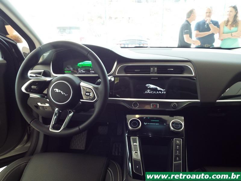 O painel é típico da casa Jaguar. Tem ótimo acabamento e auto nível de equipamentos. Tem auxílio estacionamento tanto na frente quanto atrás. O painel, ao centro, tem tela de 12,3 polegadas. O sistema de info entretenimento Touch Pro Duo do I‑PACE facilita o controle de todas as tecnologias do veículo.