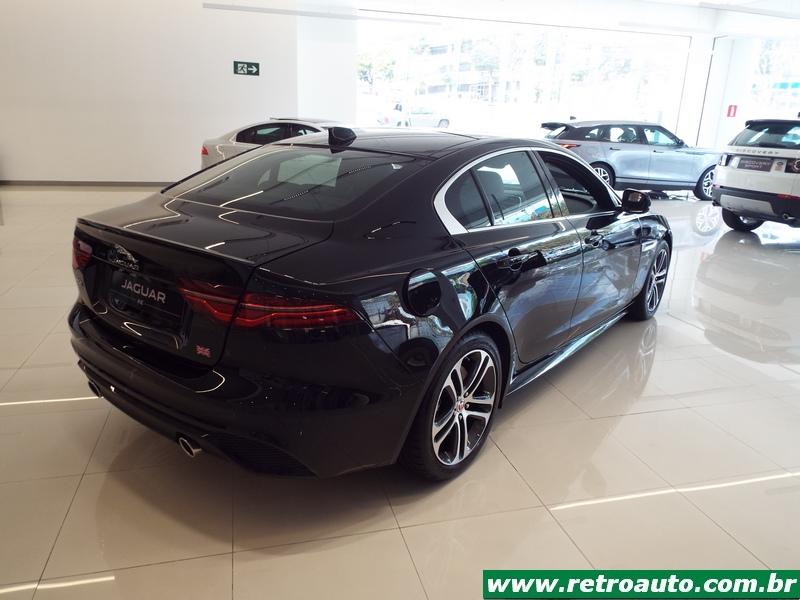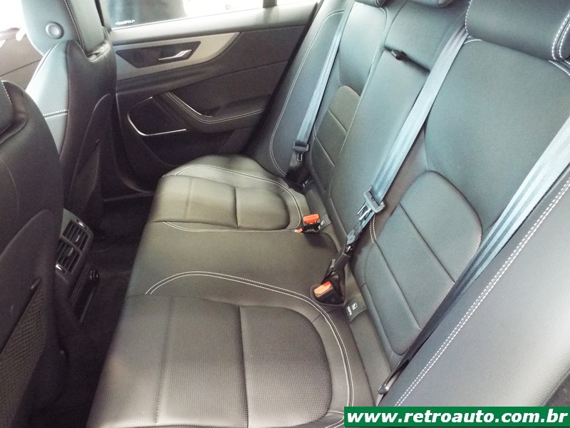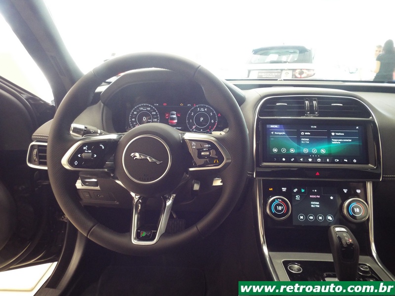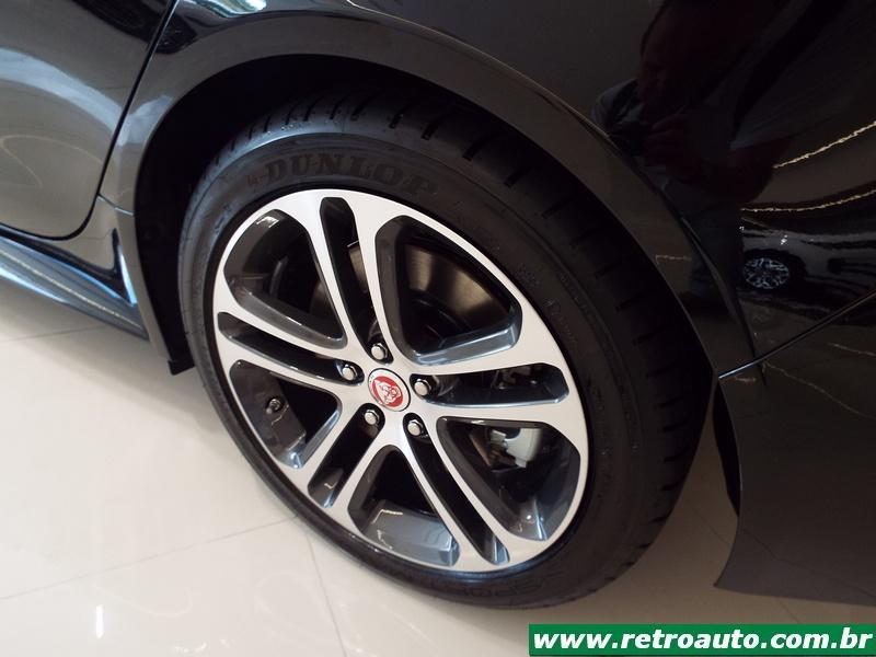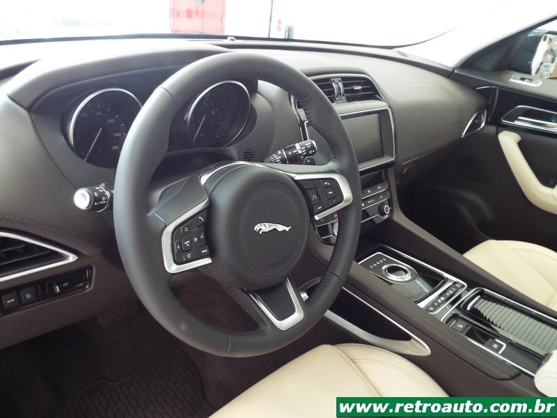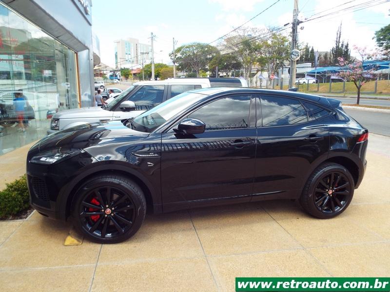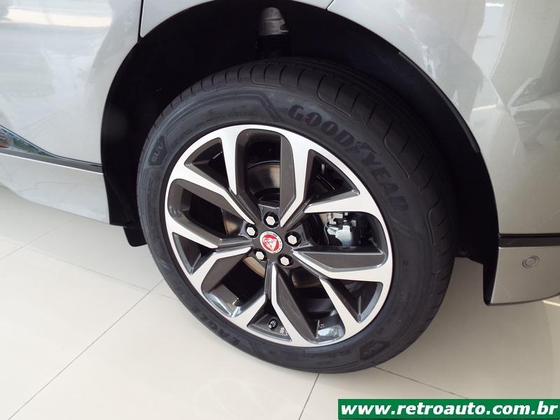 O modelo 2019/2020 é destaque no confortável salão da loja apresentado na cor preto Santorini. Seu motor dianteiro tem quatro cilindros em linha, 16 válvulas com comando no cabeçote, e está em posição longitudinal. O propulsor tem 1.997 cm³ e potência de 250 cavalos à 5.500 rpm. Movido a gasolina, tem torque de 36,6 mkgf a 1.200 rpm. É alimentado por um turbo compressor, tem tração traseira, faz de 0 a 100 km/h em 5,5 segundos e sua velocidade final é de 250 km/h. Seu cambio automático de oito marchas (seletor Jaguar SportShif) pode ser comandado por um alavanca no assoalho ou aletas no volante de ótima pega. Por fora, além da grade agressiva, tem faróis de LED (diodo emissor de luz, sigla em inglês de light-emitting diode) com um belo designer e prioriza a dirigibilidade principalmente a noite.