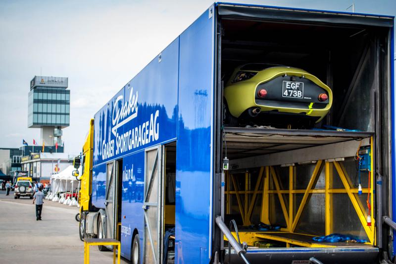 A chegada dos carros nos belos caminhões. Detalhe para Alfa Romeo TZ Coda Tronca