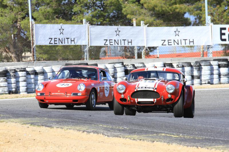 Shelby Cobra 289 1965 primeiro lugar na categoria Sixties Endurance seguido de um Porsche 911 2,0 litros 1965