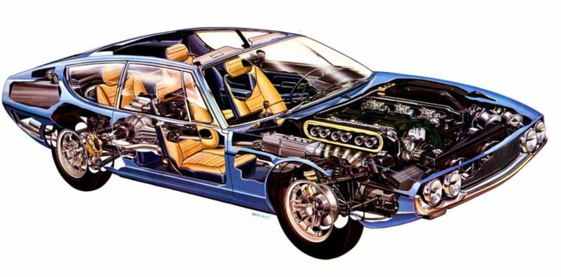 Com um designer muito atraente, um motor V12 e quatro lugares, este esportivo fez bela carreira na empresa de Ferrucio Lamborghini. Tinha muito conforto, luxo e potência. Foi fabricado entre 1968 e 1979. A linha era composta do novo "familiar", do espetacular Miura, de quem herdou vários componentes, e do Jarama que era o modelo base da linha