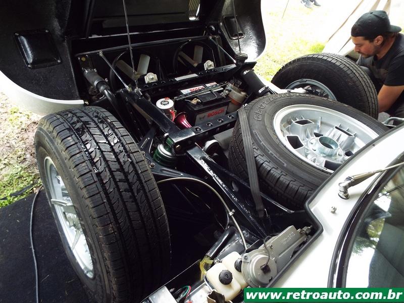 E na frente do supercarro abrigava bateria e pneu estepe. A suspensão tinha quatro rodas independentes, por triângulos superpostos , molas helicoidais, amortecedores telescópicos e barras estabilizadoras