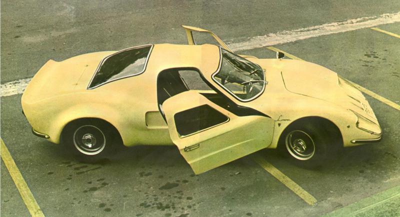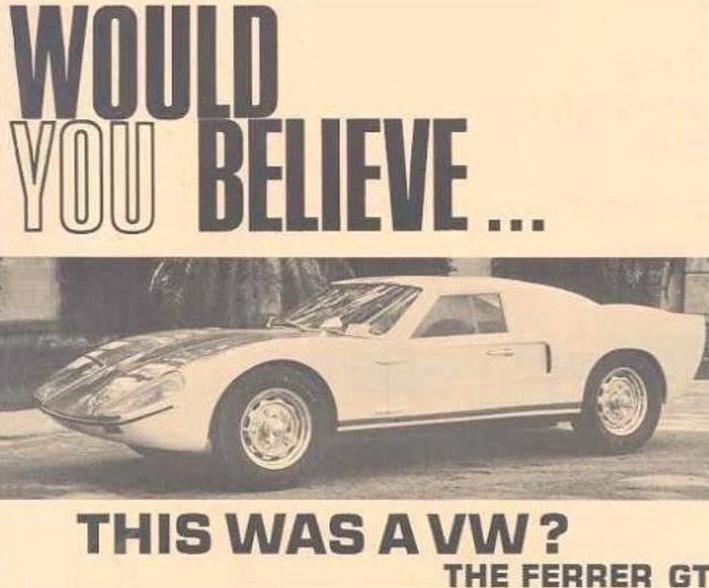 A publicidade do Ferrer GT nos Estados Unidos. Tinha linhas inspiradas no Ford GT 40