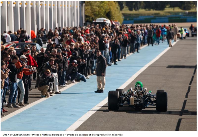 Na décima edição do Classic Days em Magny-Cours, circuito francês famoso pelas competições em várias categorias, 1.938 carros, ou seja, quase 320 a mais que 2016, foram inscritos sendo que 956 fizeram uma parada na pista, ou seja, ou deram um volta ou correram! ! Foi um grande evento num circuito e não um evento exclusivo para disputa em pista. Estavam lá os famosos pilotos franceses Jean-Pierre Jabouille (o mais alto) ao lado de Jacques Laffite ao centro, Henri Pescarolo (macacão azul) e Alain Serpaggi com boné (abaixo).