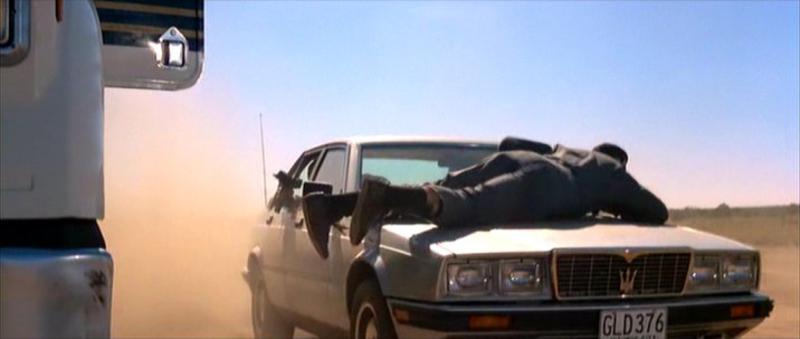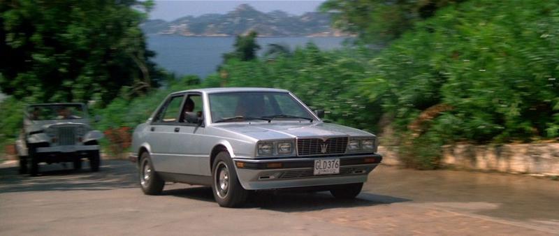 O Maserati Biturbo aparece quando Franz vai ao “Templo, em Istmo, na Colômbia, com seus assessores e visitantes orientais para conhecer o laboratório de refino de cocaína. Lá James é desmascarado e a confusão e destruição começam. Também, na escapada do local em chamas, incêndio provocado por 007, começa à debandada de três caminhões Kenworth, um Jeep CJ, uma picape Dodge RAM e o belo Maserati prata. Felizmente sai ileso após muitos tiros, batidas, acidentes, mais fogo e muito mais.