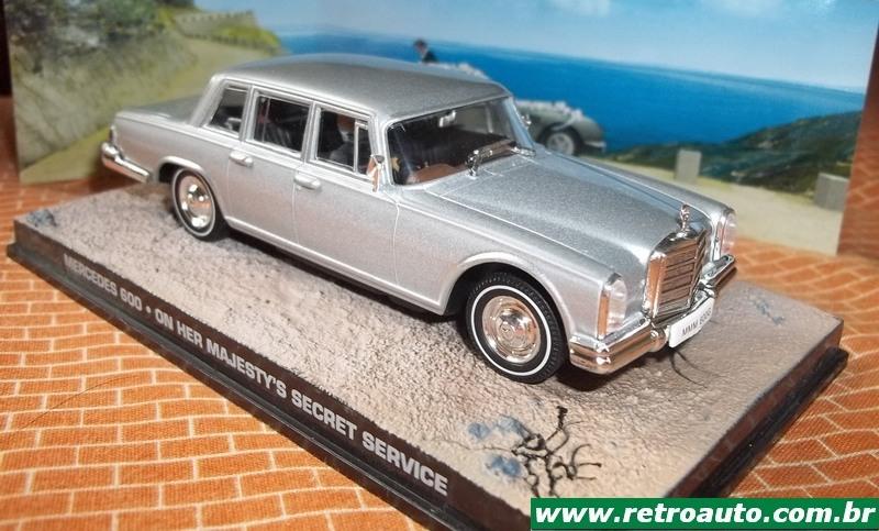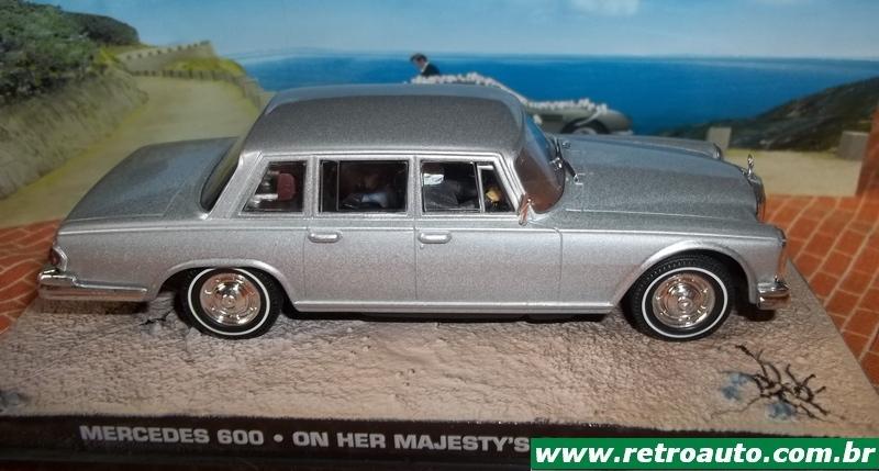 O Mercedes-Benz 600 do filme On Her Majesty Secret Service na cor prata da coleção Jamesbondcars na escala 1/43.