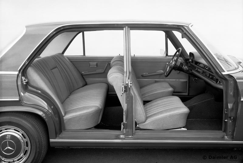 Apresentado em junho 1965, o novo modelo da casa Benz iria surpreender o segmento dos sedãs médios no mundo. Uma grande gama de motores e um acabamento de ótima qualidade para um carro familiar para cinco passageiros. Em com muita segurança. Com quatro portas, media 4,90 metros, 1,81 de largura, 1,44 de altura, 2,75 de entre-eixos e pesava 1.445 quilos em sua versão de menor cilindrada. Mantinha a bela grade que identifica os carros da marca, faróis retangulares em posição vertical ou dois circulares na versão feita para o mercado dos Estados Unidos e reservado ao modelo com motor de 6,3 litros. Tinha carroceria monobloco em chapas de aço estampada. Sua carroceria era obra do designer francês Paul Bracq. Não havia versões cupê, conversível ou perua. antes do lançamento foram duramente testados na África do Norte, em várias regiões da Europa e em baixas temperaturas na América do Norte.