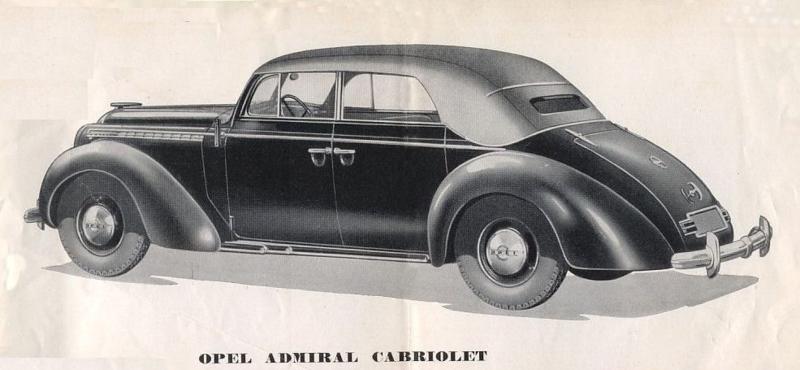 Em 1938 foi dado a um carro com motor seis cilindros, 3.600 cm³ e 75 cavalos, o nome de Admiral (Almirante). Tratava-se de um sedã grande, com 5,26 metros, com quatro portas sendo que as traseiras eram do tipo suicidas. Imponente tinha enorme grade com frisos verticais e faróis circulares. E por dentro era muito confortável e luxuoso para os padrões da época.