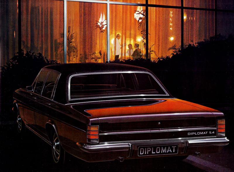 O Diplomat mantinha a mesma motorização do Admiral. Mas seu conforto e preço eram superiores. Por fora trazia belas calotas, cores metálicas e teto de vinil.