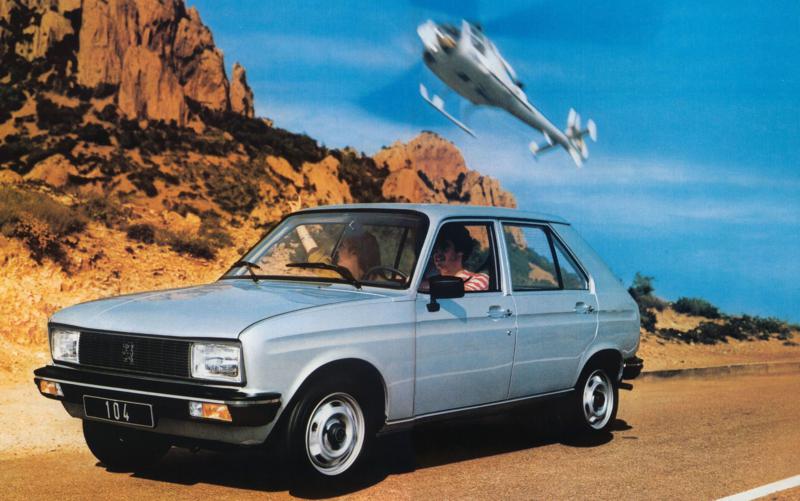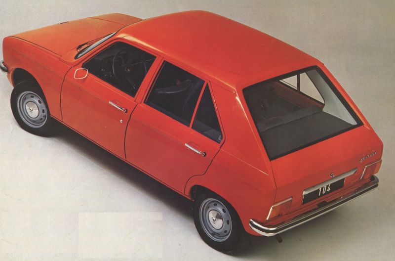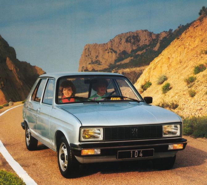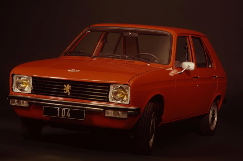 A cada mês de outubro acontece o Salão de Paris e, em 1972, era lançado o menor carro de quatro portas do mercado europeu. O pequeno 104, desenhado por Paolo Martin, tinha dois volumes, estrutura monobloco, media 3,52 metros. Seu aspecto era moderno e muito simpático. Na frente tinha faróis ligeiramente trapezoidais e grade preta com frisos verticais. Visto de lado era muito simples com linhas harmoniosas e a visibilidade era ótima. Sua largura era de 1,52 metros, altura de 1,40 e entre-eixos de 2,42 metros. Pesava apenas 760 quilos.
