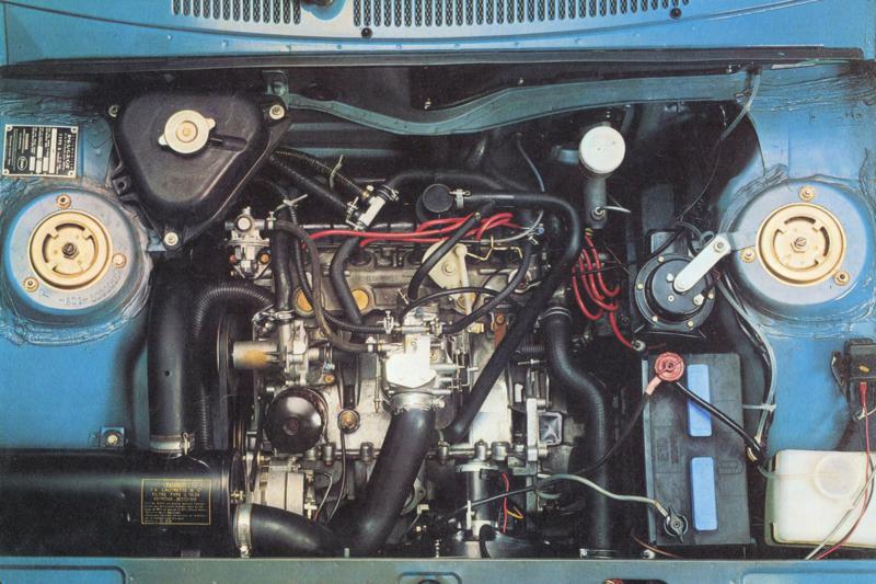 O bloco do motor e o cabeçote eram em alumínio. Tinha quatro cilindros em linha, em posição transversal, inclinado a 72º em direção a parte traseira, refrigerado a água, 954 cm³ de cilindrada, comando de válvulas no cabeçote, virabrequim com 5 mancais e potência de 46 cavalos a 6.000 rpm. O torque tímido era de 6,88 m.kgf a 3.000 rpm. Era alimentado por um carburador de corpo simples e sua taxa de compressão era de 8,8:1. Sua velocidade máxima era de 135 km/h e vencia os primeiros 1.000 metros após 39 segundos. Estava de acordo com sua classe e tinha um motor moderno. A tração era dianteira e a caixa de marchas tinha quatro marchas com alavanca no assoalho. Muito econômico, seu consumo urbano era de 9,5 km/l.