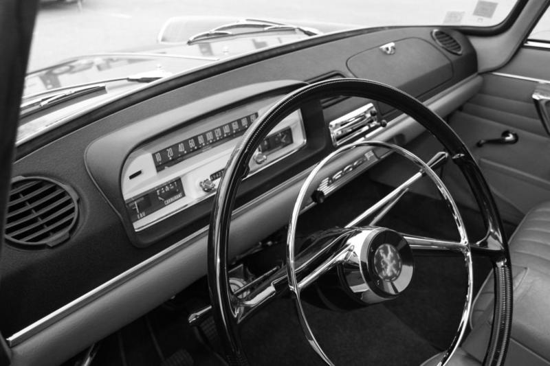 Por dentro era elegante. O volante tinha dois raios e aro de buzina cromado. O painel horizontal, exibindo também muitos cromados, era amplo e abrigava velocímetro com graduação até 180 km/h e pequenos mostradores retangulares indicando volume do tanque de combustível e temperatura da água. Tinha ainda vários botões de controles e luzes espia. Ao lado acomodava rádio, desembaçador, cinzeiro e porta-luvas. Destaque para a enorme alavanca de freio de mão que saía debaixo do painel à esquerda.