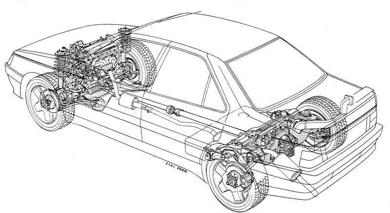O motor de quatro cilindros em linha, em posição transversal ficava atrás dos bancos dianteiros inclinado a 20º. Com dezesseis válvulas, desenvolvia 400 cavalos a 7.500 rpm. Suas quatro rodas eram motrizes e diretrizes dependendo da prova a que ia se submeter. Usava pneus Michelin. O cambio tipo TJ podia ter cinco ou seis marchas e sua velocidade final era de 230 km/h.