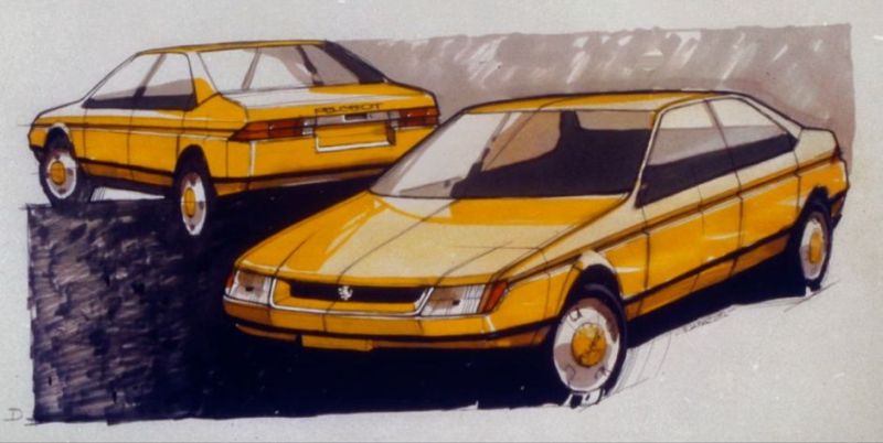 Em meados de 1982 os primeiros esboços de um carro moderno, sedã com três volumes, boa aerodinâmica estavam nas pranchetas dos escritórios. Suas dimensões estavam no segmento M2, ou seja, na categoria média superior que representavam 20% dos emplacamentos nos 17 países da comunidade econômica europeia. Na França quase 55%. Seu comprimento deveria estar entre o 305 e o 505. O Centro Técnico de La Garenne, situado na região parisiense trabalhava junto com Estúdio Pininfarina em Torino na Itália. No primeiro semestre de 1983 mais dois esboços foram apresentados sobre o nome de código D60 e no final do ano já eram seis com linhas bem definidas e pequenos ajustes a fazer. Tinha estilo próprio e muito bonito.