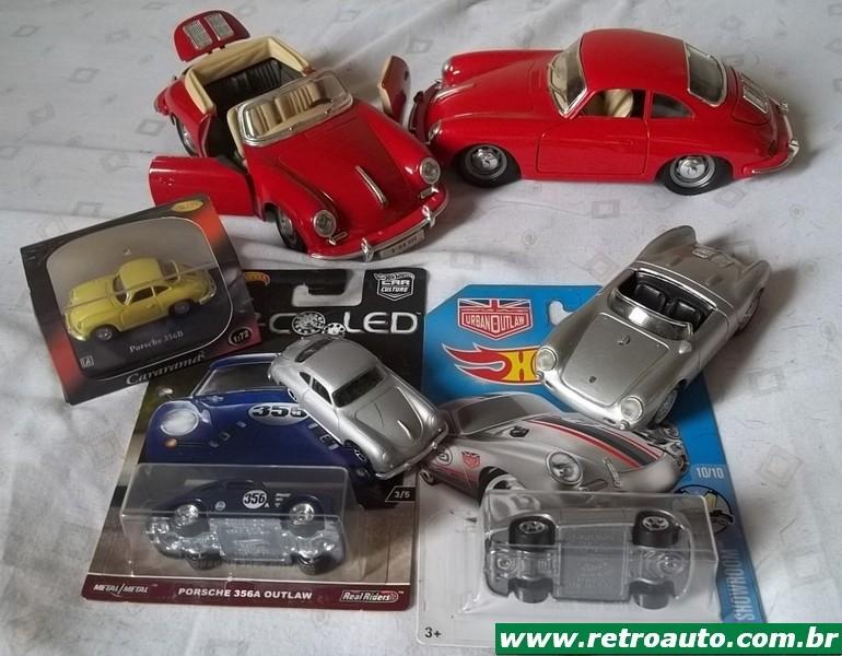 Acima um 356 A Bburago 1/18 muito bom! Abaixo dois Bburago ma escala 1/24 356 B. Na escala 1/64 dois recentes de 2017 da Hot Wheels escala 1/64 dentro das embalagens. O cupê prata 356 A é da Maisto assim como o 550 (1/43). Dentro da caixa um amarelo 356 B na escala 1/72 da Cararama.