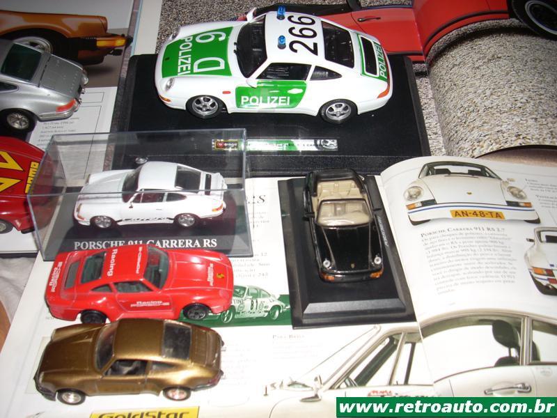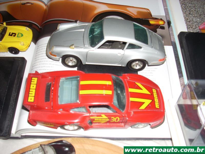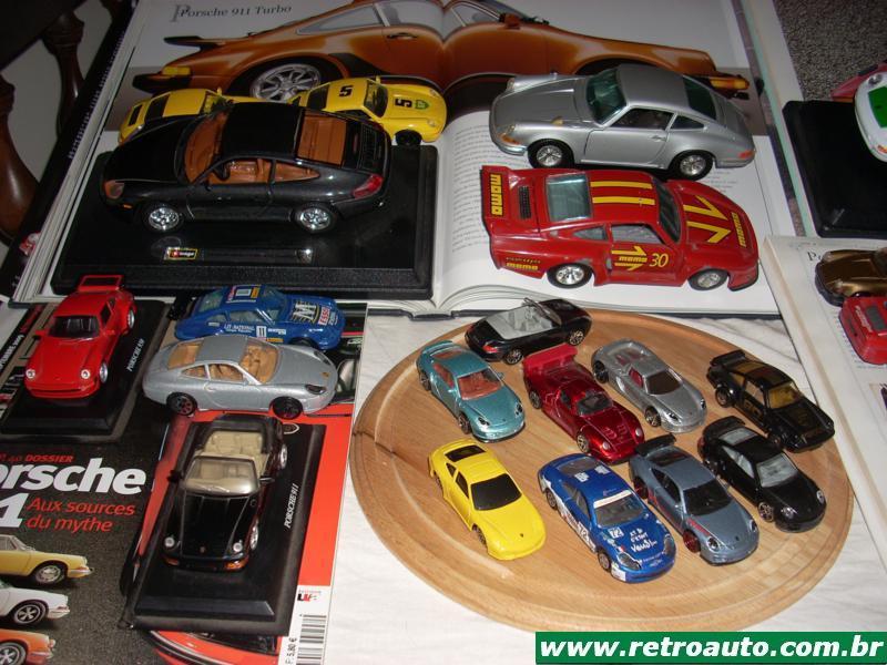 A Solido francesa tinha em seu catalogo de 1979 a versão de corridas 934. Na cor branca, escala 1/43. O Carrera 911 RS, também na mesma escala estava disponível na cor marrom. As portas se abrem, as rodas cromadas são bonitas e o duplo escapamento é cromado. Bem detalhados são os faróis e faroletes assim com os pára-choques e spoiler em preto. Nas bancas de revistas do Brasil a Del Prado Collection sempre ofereceu miniaturas com preços razoáveis e acabamento muito bom. Fez o primeiro conversível do Porsche 911 na cor preta, interior marrom e também com faróis, faroletes e rodas bem detalhados. Na escala 1/43 vem sobre uma plataforma. Também nas bancas a Maisto vendeu a sua na escala 1/36 e cor amarela do 911 Carrera de 1995. Correta e com bom preço. Foram vendidas a partir de 2001. A conhecida italiana Bburago explorou bem a marca. No catalogo de 1999/2000 tinha na escala 1/18 o modelo GT3 Cup. Muito bem decorada com decalques em varias cores, as rodas esterçavam. Também na escala 1/18 fez o 911 Carrera de 1997 na cor vermelha, o Carrera 4 de 1998 na cor vinho metálico e o 911 Carrera Racing de 1993. Ainda do mesmo tamanho tinha o 911 conversível de 1994. Na escala 1/24 se repetiam o 911 Carrera Racing de 1993, o 911 Carrera de 1997 e o. 911 conversível de 1994. A novidade nesta escala média era o modelo 959 Turbo na cor prata.
