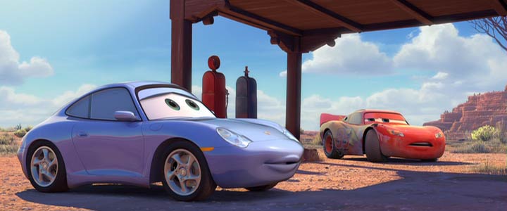 Um desenho animado que fez muito sucesso entre crianças e marmanjos foi Cars (Carros) de 2006. Muito bem feito narra a história da cidade de Radiator Springs onde vivem vários carros famosos animados que têm emoções e reações como os humanos. Um deles é Lightning McQueen, um Stock-Car vermelho, o outro é Doc Hudson, um velho Hudson Hornet e a personagem feminina é Sally Carrera, um Porsche Carrera “feminino” azul que não se intimida frente a outros carros mais parrudos. Ótima diversão. Vários atores famosos fazem as vozes dos carros como o recém falecido Paul Newman (Doc Hudson), Owen Wilson (Lightning McQueen) e Bonnie Hunt (Sally Carrera)
