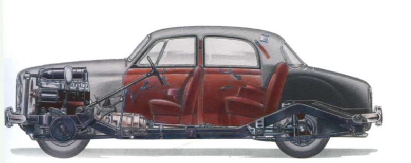 Os freios dianteiros tinham assistência parcial hidráulica e os de trás, acionados por cabos. Um de seus concorrentes diretos era o Citroën Traction 15, também com seis cilindros.