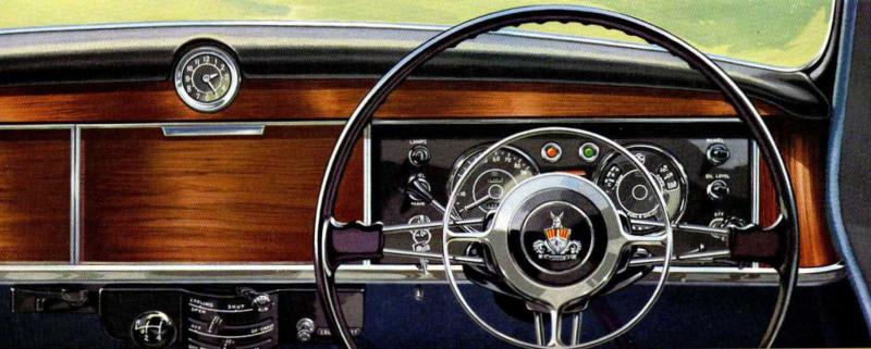 Por dentro mantinha a classe, discrição e a sofisticação britânica. Bancos confortáveis, em couro, tapetes espessos, madeira no painel e nas forrações de portas, lâmpadas de iluminação no porta-luvas, no porta malas e para os ocupantes que iam com muito conforto atrás. Se não fosse usado o descansa braço, três viajavam com conforto e também o mesmo numero na frente já que a alavanca de marchas estava na coluna.