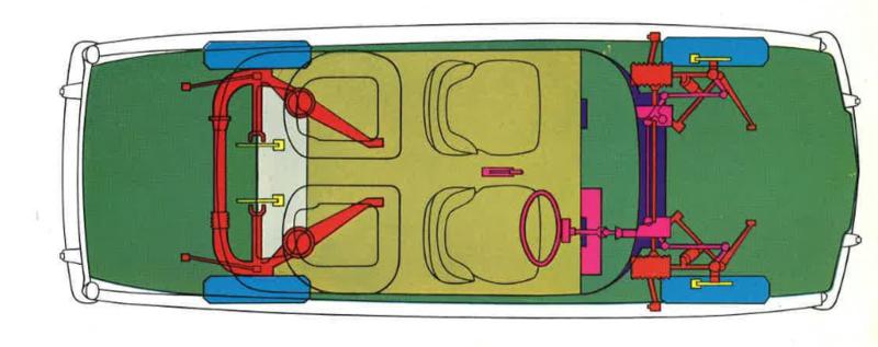 O motor dianteiro, coberto por um capô de chapa de alumínio, tinha quatro cilindros em linha, 1.978 cm³, desenvolvia 99 cavalos e o comando de válvulas era no cabeçote. Era alimentado por um carburador da marca SU. Sua caixa tinha 4 velocidades e a tração era traseira. A velocidade final era condizente com a motorização: 165 km/h. Seu consumo era de 10 km/l e o tanque, com capacidade para 55 litros, ficava logo atrás dos bancos traseiros, em pé, como nosso Chevette. Seus freios eram a disco nas quatro rodas, da marca Dunlop, servo-assistidos. Os traseiros eram acoplados ao diferencial.