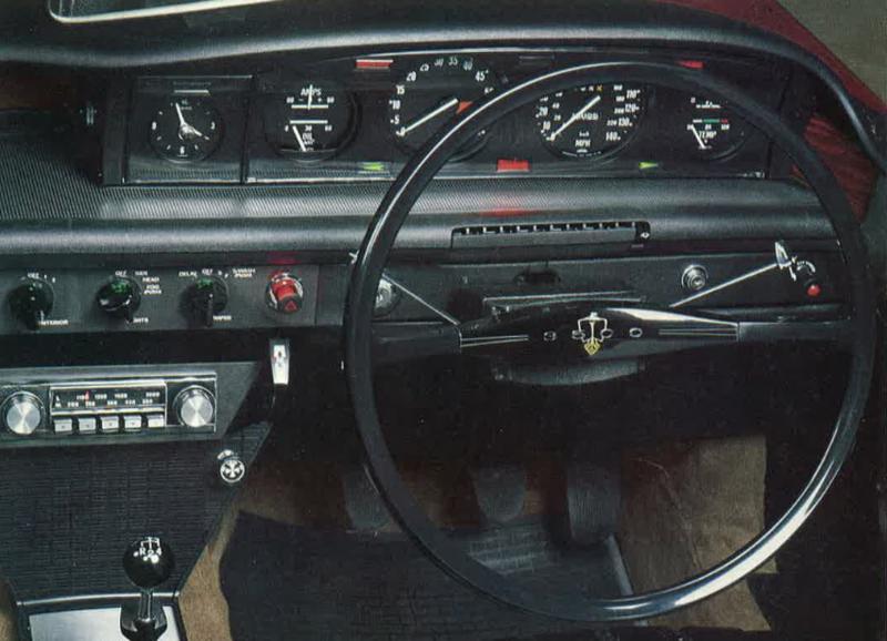 Por dentro o destaque ficava por conta do grande velocímetro de formato retangular em posição horizontal. Ao lado deste, ficava um relógio de horas e o conta-giros, ambos redondos e da marca Smith. Não era nem um pouco harmônica esta apresentação.