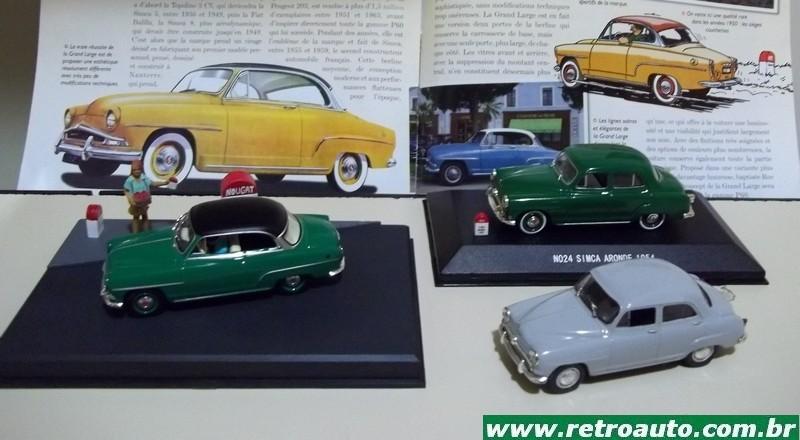 Versões de duas e quatro portas. O modelo cinza é um Norev. O verde "Coach" ou "Large Coupé" é um Altaya. Todos na escala 1/43. Observe a moça abaixo vendendo morangos e o marco da estrada. Bem acabado!
