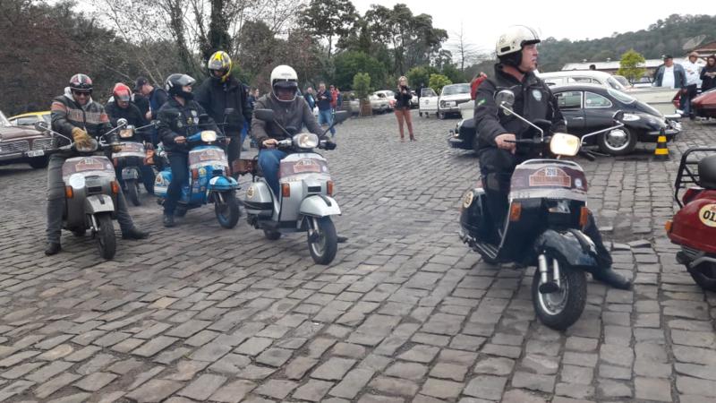 Na sequência, foi a vez das scooters. Vespas e Lambretas, totalizando 15 veículos, foram a novidade do evento com a primeira edição do ‘Passeio de Regularidade de Scooter Histórica dos Vinhedos’. Com beleza singular, os veículos duas rodas atraíram a atenção das pessoas para completar o trajeto de 190 quilômetros com passagem por Garibaldi, Carlos Barbosa, São Pedro da Serra e retorno a Bento Gonçalves.