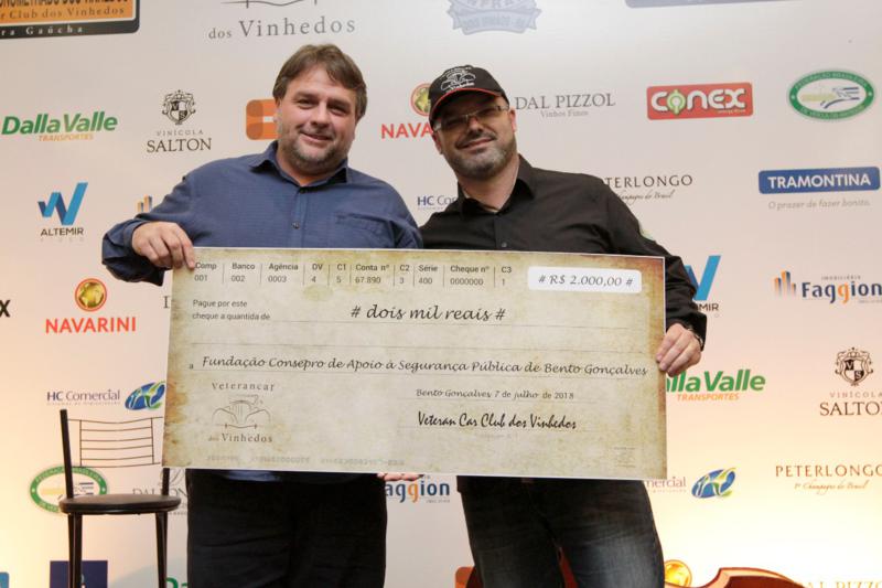 A ocasião também serviu para a entrega de doação financeira com fins sociais para Cristiane Larentis e Fundação Consepro de Apoio à Segurança Pública de Bento Gonçalves.