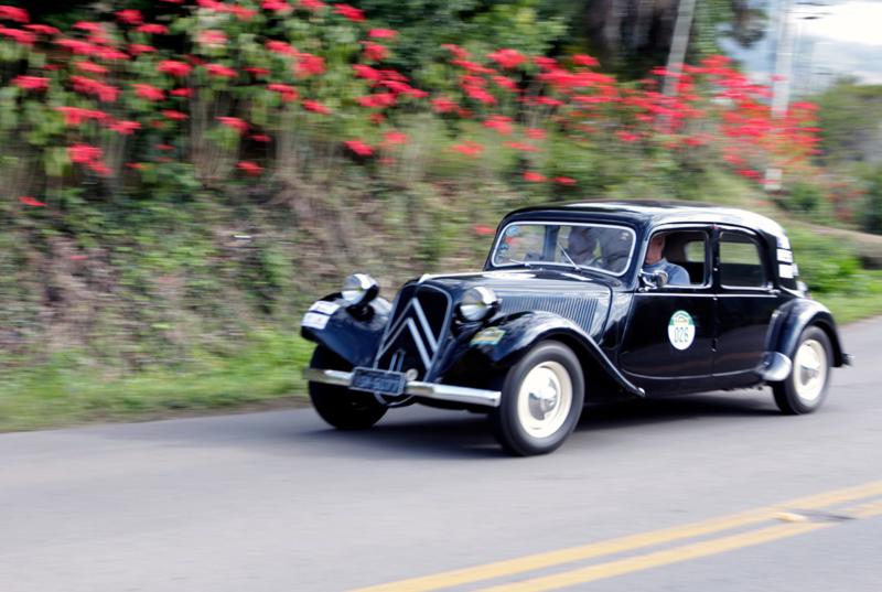 Às 9h21min começou a saída dos veículos fabricados a partir de 1931. Com variadas cores, formas e tamanhos, os carros iniciaram um desfile de charme e beleza pelas estradas da Serra Gaúcha. A planilha levou os participantes a percorrerem o distrito de Faria Lemos, com descida para a Linha Alcântara, onde os inscritos costearam o Rio das Antas para chegar à comunidade de Santa Bárbara, já no município de São Valentim do Sul.