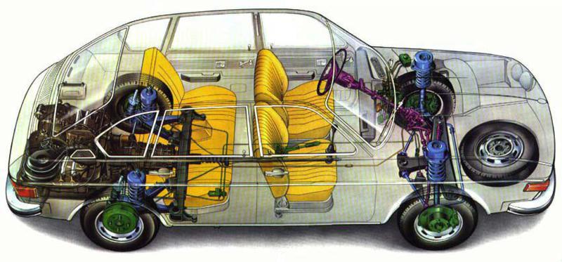 Seu motor traseiro com quatro cilindros opostos tinha bloco em ferro fundido e cabeçote em liga leve. Tinha 1.679 cm³, dois carburadores da marca Solex e 68 cavalos (DIN) a 4.500 rpm. Sua tração era traseira e velocidade máxima de 145 km/h. Tinha cambio manual de quatro marchas ou três automáticas. Seu porta malas era na frente a atrás dos bancos traseiros havia um porta objetos de bom tamanho.