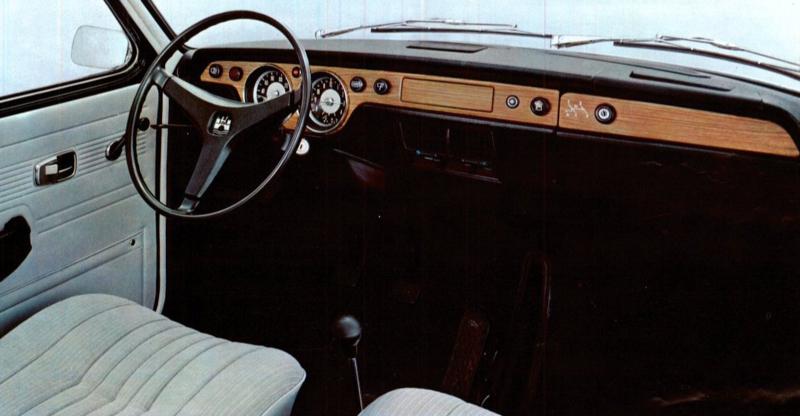 Por conta da nova distância de entre-eixos, tinha espaço interno muito bom, o acabamento era superior ao dos modelos antigos e menores da marca. E havia novos itens de conforto. A versão L vinha com bancos dianteiros com novo desenho e eram reclináveis. Havia um enorme relógio de horas no novo painel ao lado do velocímetro de mesmo tamanho, assoalho acarpetado e encostos de cabeça. Acabamento imitando madeira e um volante de três raios de boa empunhadura. Cinco pessoas viajavam com conforto! A bateria, com posicionamento curioso ficava abaixo do banco do motorista.