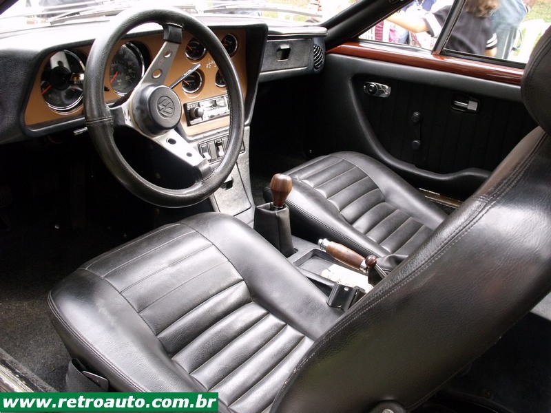 Por dentro era muito bonito também e bem equipado! Havia um console entre os bancos, estes em formato de concha, anatômicos, que eram em courvin (couro como opcional) , alavanca de marchas com ótima pega, boa posição de dirigir, volante de três raios com diâmetro adequado e sua instrumentação era digna de um esportivo: velocímetro graduado até 200 km/h,com odômetro parcial e total, conta-giros com marcação até 6.000 rpm sendo que a faixa vermelha começava aos 5.000 rpm, marcador de combustível (tanque com capacidade de 40 litros), relógio de horas, amperímetro e termômetro. No SP-1 não havia o útil amperímetro e o termômetro de óleo. Como itens de conforto havia ventilador com duas velocidades de série, tapete de buclê em nylon, luzes de leitura, rádio AM-FM, um pequeno porta-luvas e alça de apoio para o passageiro na coluna A. Um problema, mesmo com a ventilação era a temperatura dentro do carro em dias de calor. Seu maior concorrente era o Puma GT (Leia).