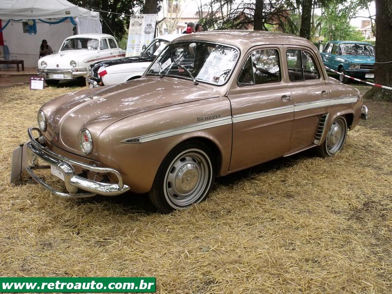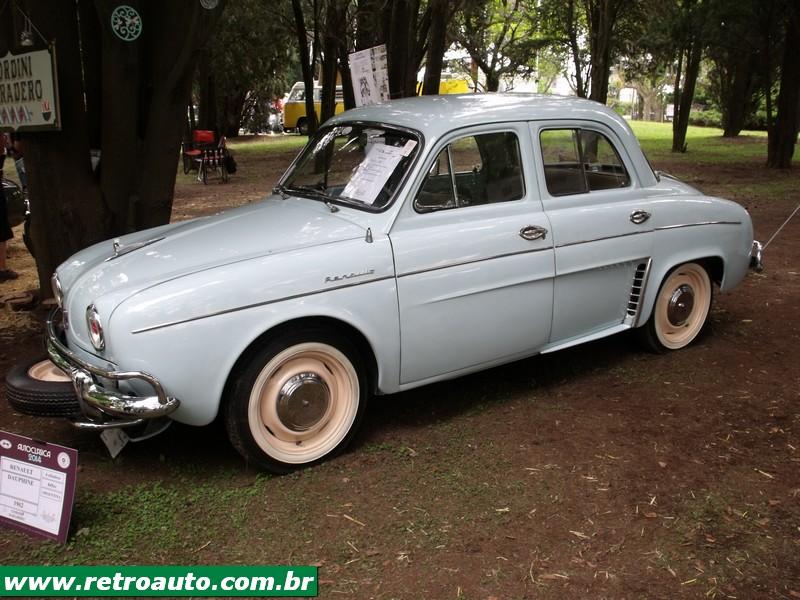 O Dauphine foi lançado em 1959 pela Willys Overland do Brasil, sob licença de fabricação da Régie Renault francesa. Nosso carrinho, que iria competir com o VW sedã e o DKW, era um sedam de quatro portas com carroceria monobloco, tração e motor posicionados na traseira. O motor Ventoux que o equipava tinha 845 cm³ e 26 cavalos, refrigerado a água. Tinha três marchas sendo que a primeira não era sincronizada. O capô dianteiro dava lugar a um pequeno porta-malas e a abertura era em sentido contra o vento. Ele, o carro da Vemag e o Romi Isetta foram os primeiros carros nacionais com deslocamento volumétrico inferior a 1000 cilindradas. E tiveram versões populares como o Caiçara(Vemag) e Teimoso (Willys).