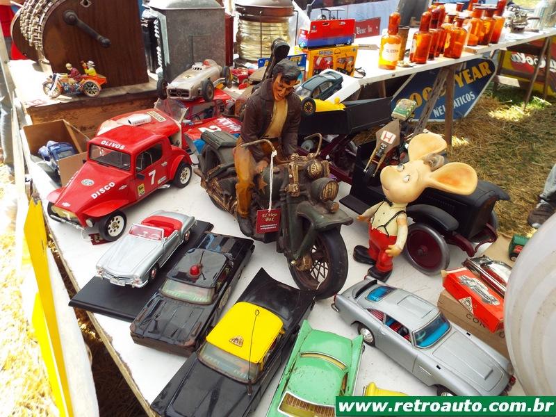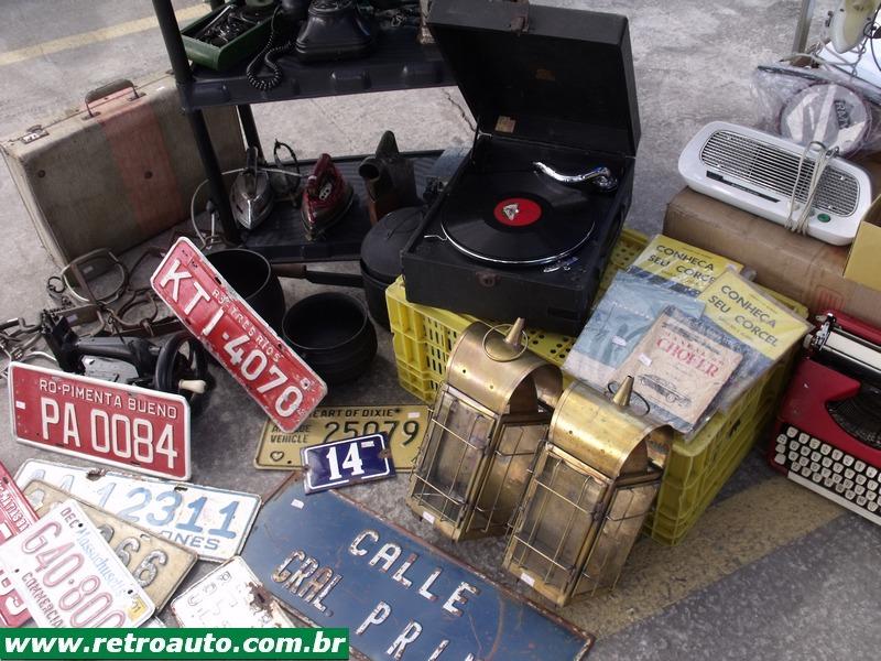 Antes havia só peças, livros, catálogos e miniaturas de carros. Hoje a variedade é enorme e existe móveis, peças de decoração, adornos, discos, roupas.... se for algum equipamento elétrico pouco importa se funciona ou não! O que vale é a lembrança!