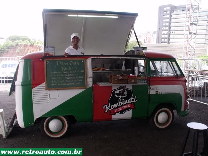 Veja nas imagens abaixo que a caçamba da Kombi serviu de palco para duas ótimas bandas, pizzaria, vitrine de objetos variados...