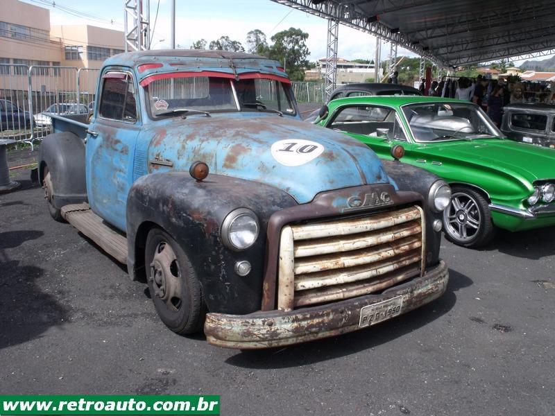 Um pesado GMC. Tem a mesma carroceria da linha Chevrolet Advance-Design fabricada entre 1947 e 1955. Trata-se de um modelo 6100, um pequeno caminhão rebaixado. As rodas são originais