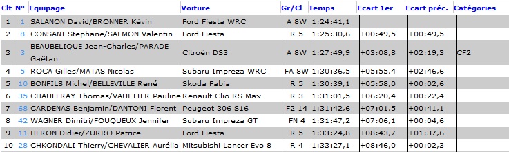 Jean-Christophe Destruel (Porsche 911 SC) ayant du renoncer dans l’ES 6 suite à des ennuis mécanique tout comme Didier Sirgue un peu plus tard, c’est Guy Delsol rapide et régulier auvolant de son Opel Kadett GTE qui rafle la mise. Il devance la Porsche de Didier Vaquer (qui ne figure pas dans le classement car appartenant à la catégorie Classique) et celle de Franck Morel qui est parvenu à réparer tant bien que mal.