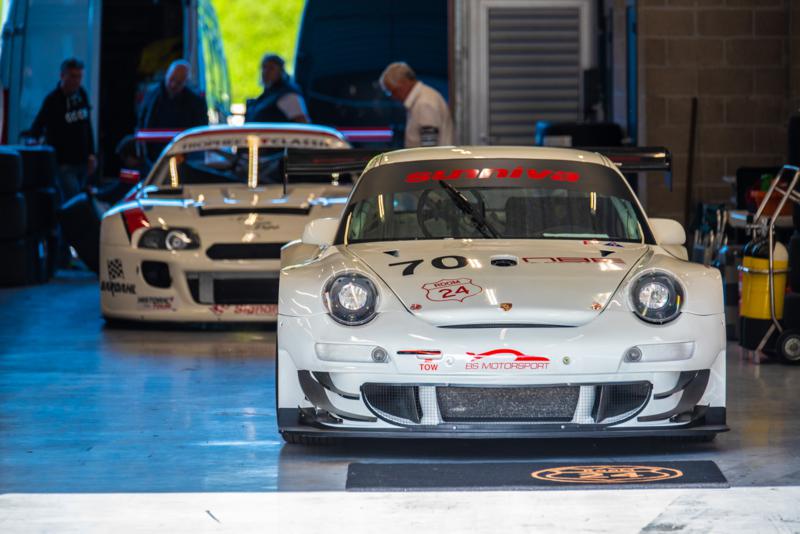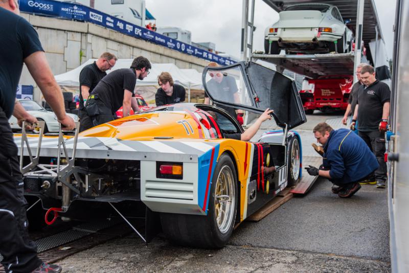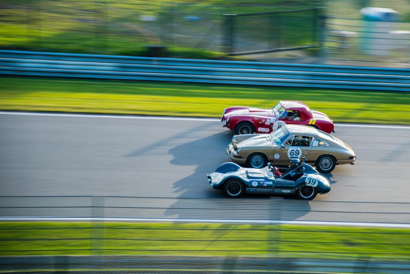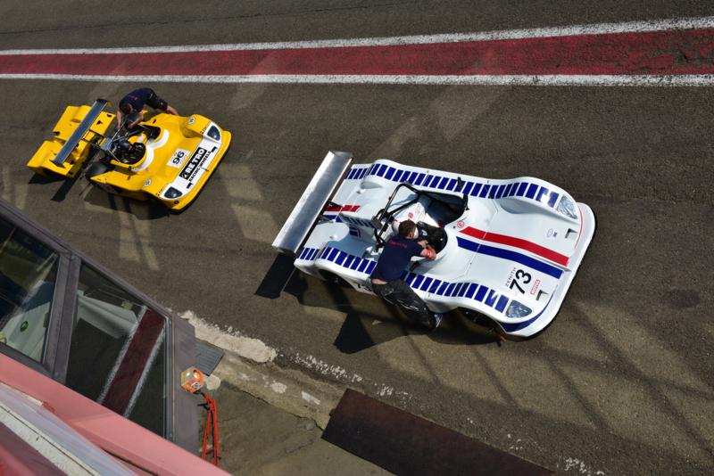 Chevron B21 BDG da Classic Endurance Racing 2. Observe o De Tomaso Pantera atrás dos Porsche.