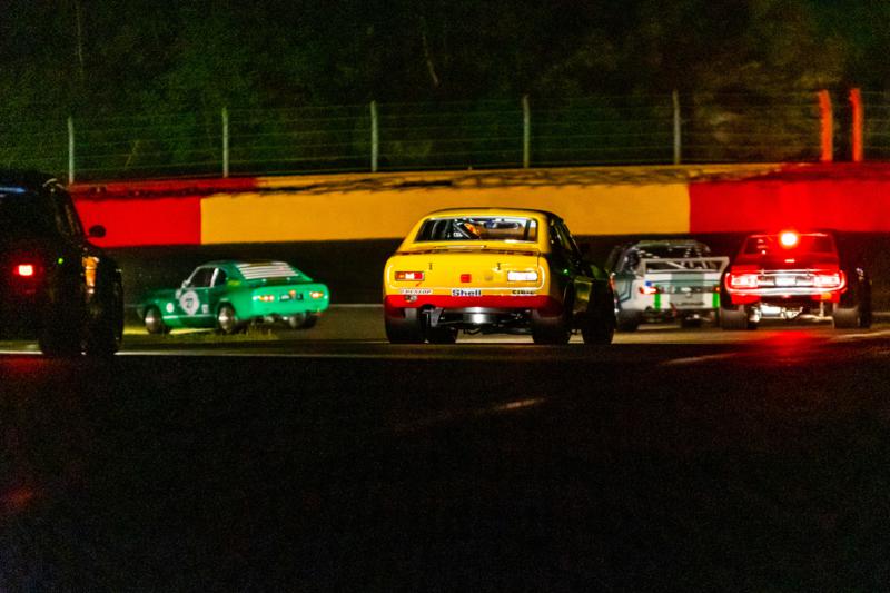 Formant une haie d’honneur devant les files de voitures prêtes à s’élancer en piste, les spectateurs ont pu apprécier la proximité qu’offre l’évènement avec les concurrents. Une occasion pour chacun de se remémorer quelques-unes des plus belles pages de l’histoire des 24 Heures de Francorchamps, au temps des voitures de Tourisme, mais aussi des 1 000 kilomètres de Spa avec des Prototypes et GT couvrant une période allant de 1952 (Aston Martin DB2) à 1993 (Peugeot 905). En somme, quatre décennies marquées, sur ce circuit, par les victoires des Ferrari 250 LM (1965), Ford GT 40 (1968) ou Porsche 962 (1986)… Autant de modèles emblématiques représentés en piste ce week-end. Au total, ce sont 216 voitures de course réparties en six plateaux (Classic Endurance Racing 1 & 2, Group C Racing, Heritage Touring Cup, Trofeo Nastro Rosso, Sixties’ Endurance) qui ont assuré le spectacle au cours des neuf courses dont celle – magique ! – tenue samedi soir à la tombée de la nuit.